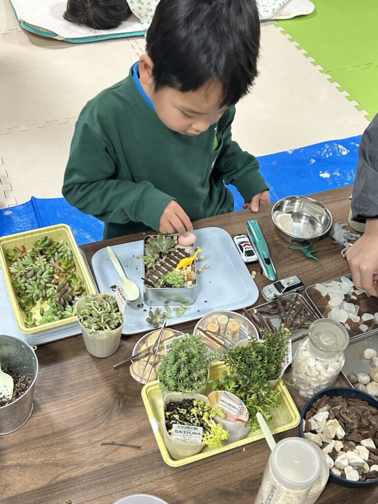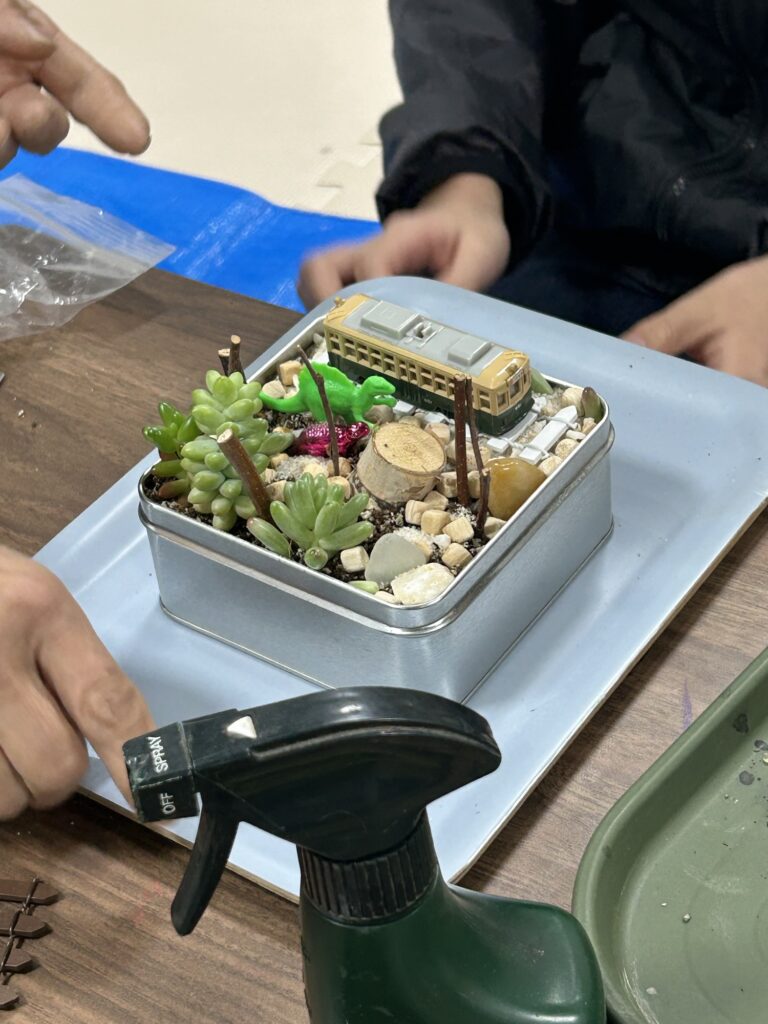 箱庭のテーマをそれぞれが考えて、思い思いのお庭をつくりました!!